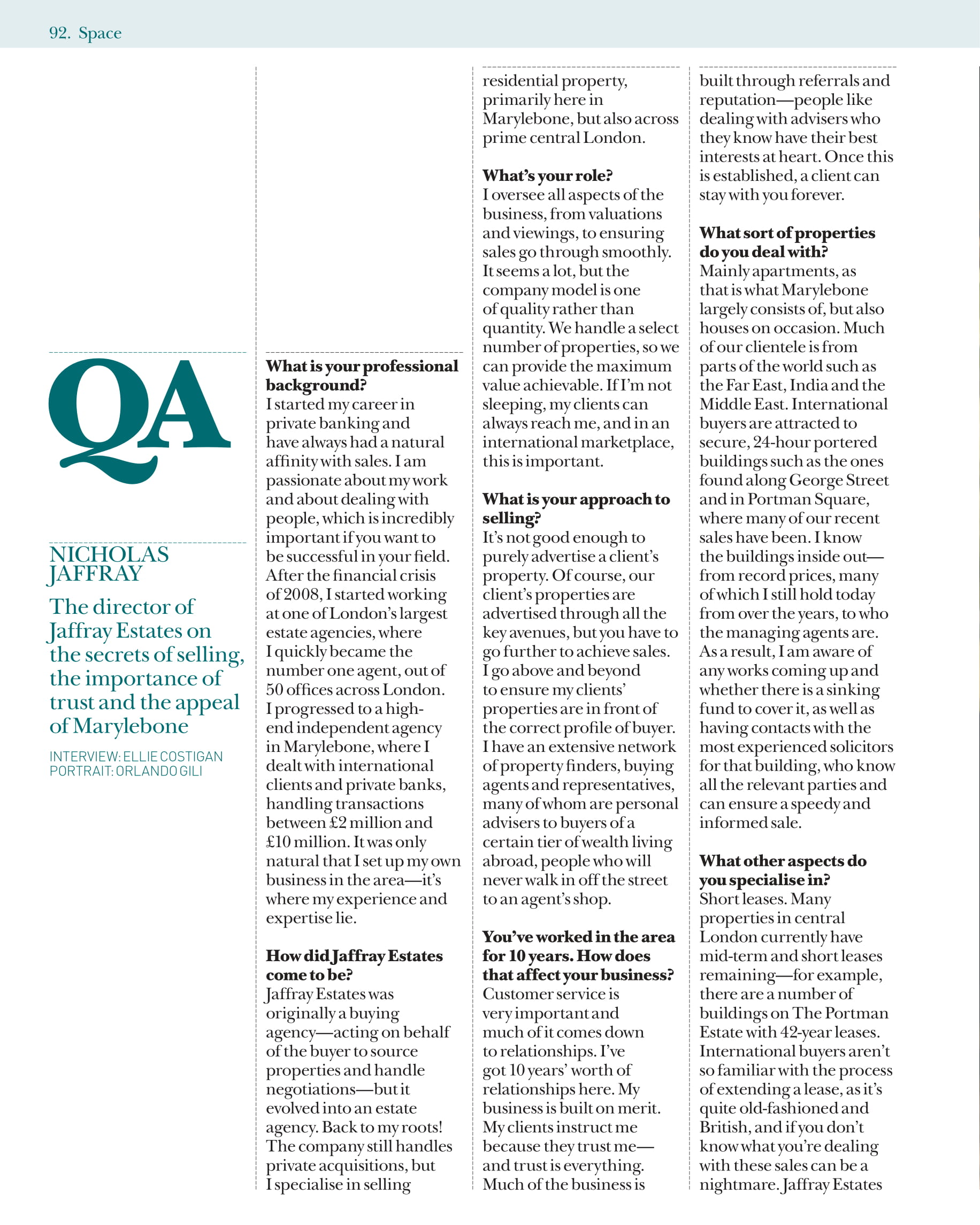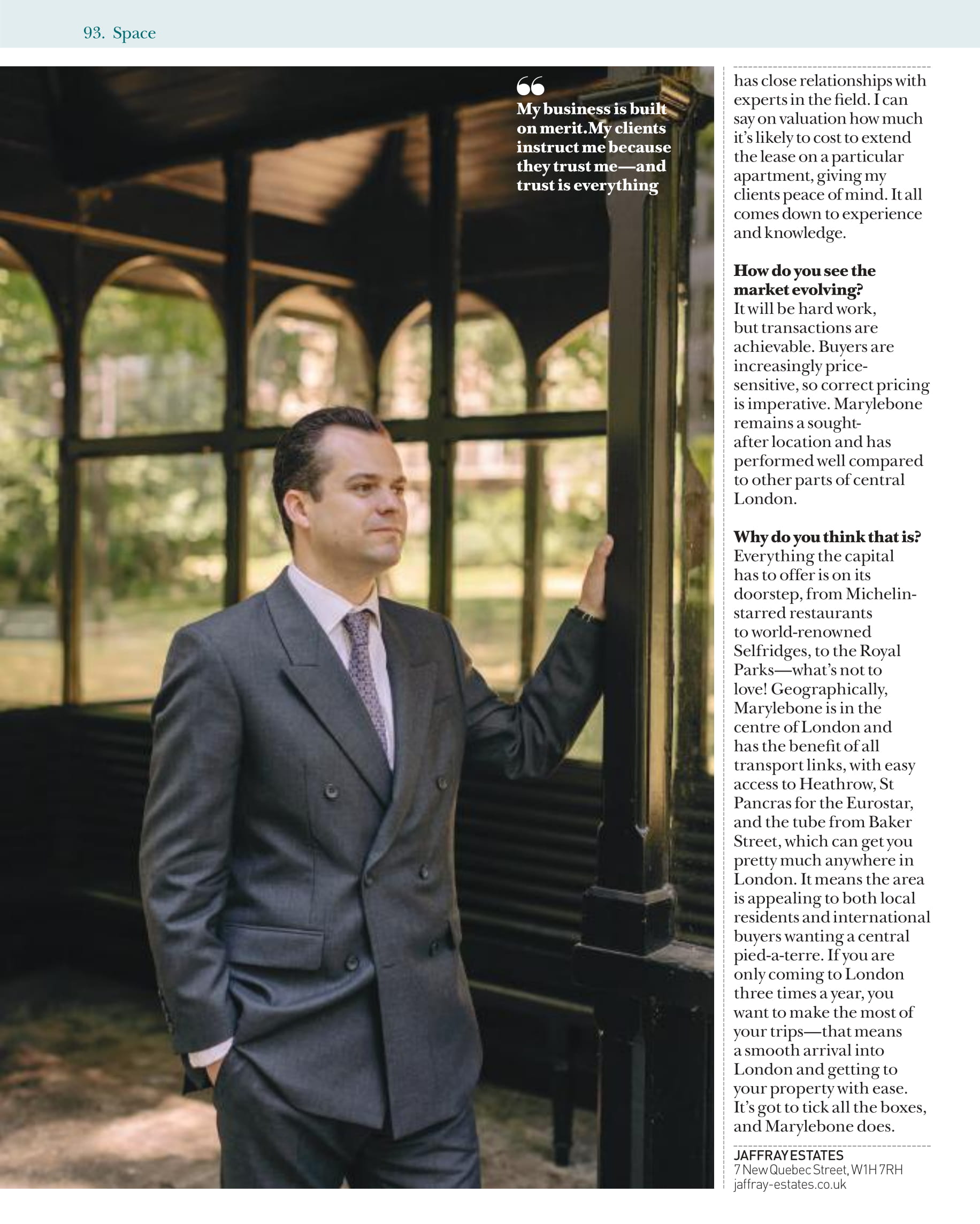 Marylebone Journal Q & A: Nicholas Jaffray on the secrets of selling, the importance of trust and the appeal of Marylebone
